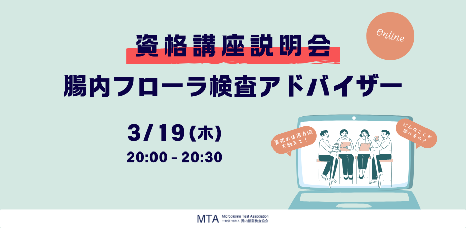 「腸内フローラ検査アドバイザー」資格講座の説明会をオンライン形式で開催いたします。